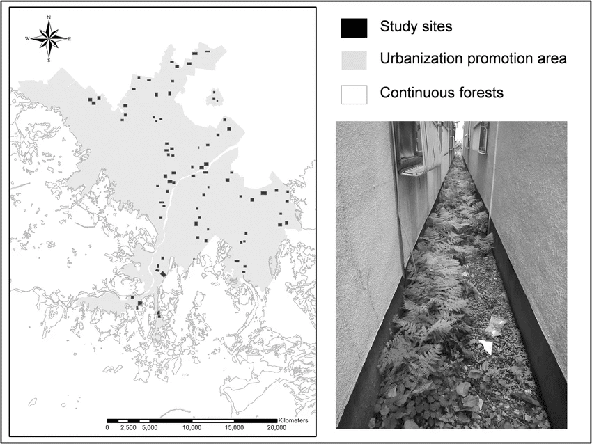 À Sapporo — 2 millions d’habitants — on dénombre une centaine d’espèces de fougères. Un tiers d’entre elles trouvent refuge en pleine ville, dans des interstices de quelques mètres carrés entre les murs que personne n’identifiait comme des habitats.