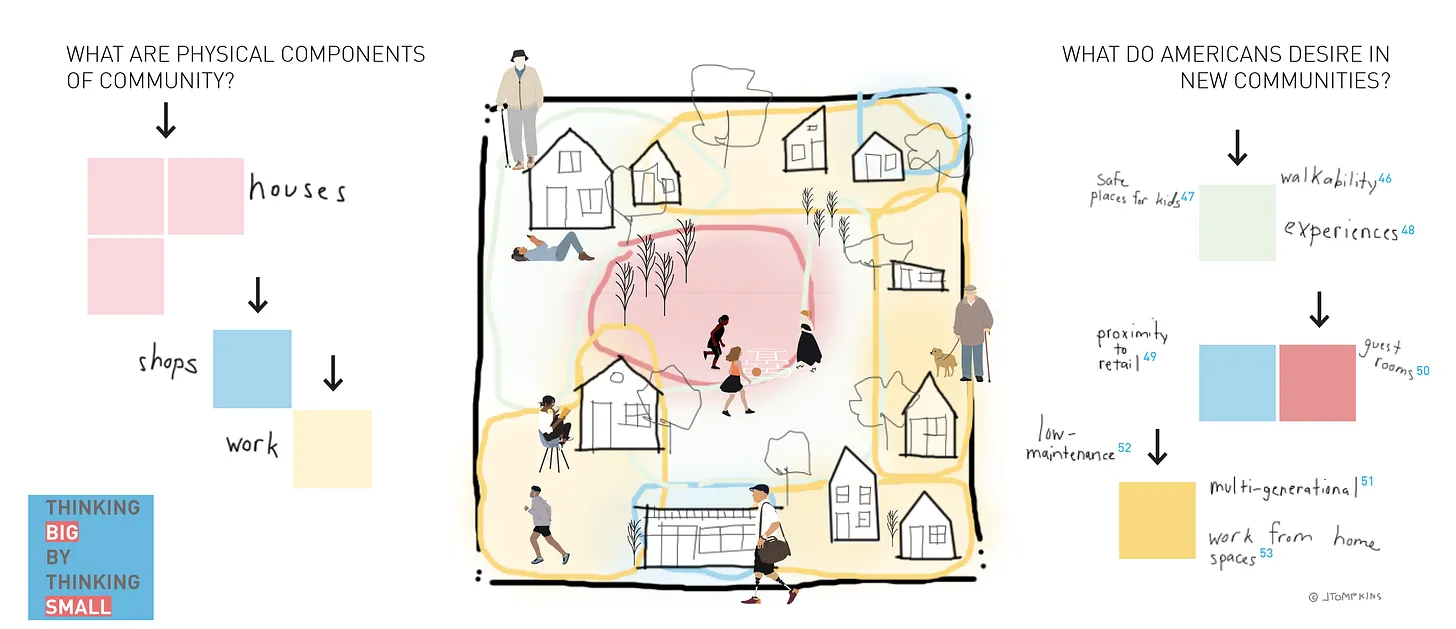 Figure n°3 : Extrait de notre livre blanc « Thinking Big by Thinking Small » (qui donne son nom à notre site): les Américains souhaitent davantage des quartiers d’habitat individuel que ceux que nous construisons aujourd’hui.