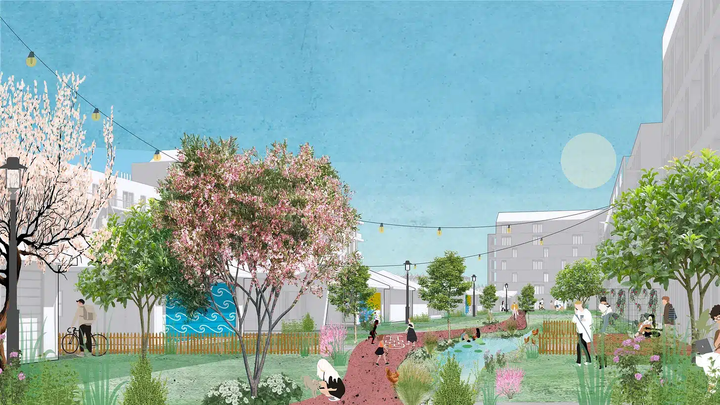 Figure n°8 : Une illustration de ce à quoi pourrait ressembler une cour collective sur un îlot urbain classique de Chicago.