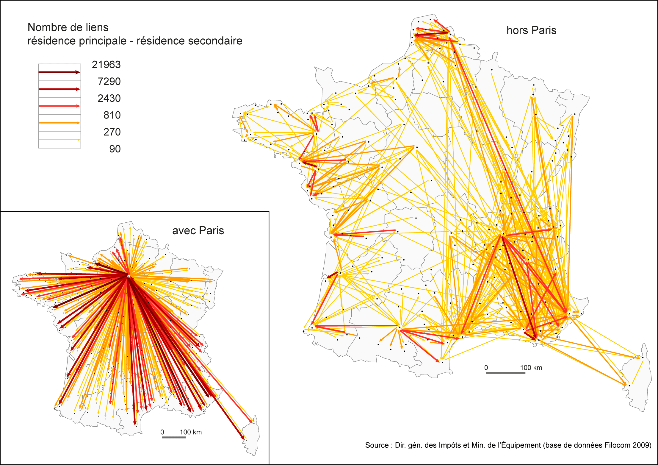 La carte ci-dessus (figure n°1) est une petite révolution dans le monde du tourisme, puisqu’elle représente les liens entre résidence principale et résidence secondaire.